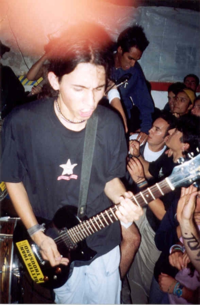 Well about the lyrics of the band, Diogo is the one that does them. We've decided since the beginning of the band the he would do the lyrics because he feels more comfortable with that. We sometimes help him with ideas for lyrics and to improve them also. We have some lyrics about sXe but I don't know if we're going to have more in the future. We're all sXe but I don't think it's something we should talk about in all our lyrics. I'm a bit fed up with bands having lyrics about the same stuff. I think we in Pointing Finger try to talk about other stuff too. Ok, it's cool to have lyrics about friends, dedication, sXe, but c'mon.... there's a real world out there with real problems that should be focused on and reflected upon. But I think every lyric we have will be somewhat connected with sXe because that's the way we live.