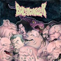 Balatonizer from Italy remind me of three bands: Nasum, Cannibal Corpse and Obituary. Nasum because of the music which is pure fuckin' Grindcore, sometimes technical, but mostly a full speed ahead blast. Cannibal Corpse because of the vocals that could be described as a mixture of Chris Barnes and George "Corpsegrinder" Fisher. And finally Obituary because Balatonizer don't have lyrics. Instead, the singer just growls and screams something that fits to the music. Even though I never was that much into Grindcore - apart from Terrorizer/Nausea (gods!), early Carcass, early Napalm Death, Repulsion (gods!!) and the aforementioned Nasum - I think these 32 songs (playing time 25 minutes, any questions?) are pretty cool and can easily compete with their international Grindcore colleagues. "Scacciatieista" contains a soundtrack sample from my favourite movie ever, "The good, the bad and the ugly" and this is reason enough for me to like this record. Balatonizer don't have a drummer, but the guitarist Marco is responsible for the drum programming, and this turns out surprisingly well. In most cases you can easily hear that a drum computer is at work, but not here. Enough said, every Grindhead should pick up this record. I only wonder that I didn't hear from this band earlier as they were already formed way back in 1997... By the way, "Occlused in Ottusity" was released back in 2003, but as Mario send me the record a couple of weeks ago I don't have a problem with reviewing it anyway. Comes with a bonus video clip which is pretty professional. (Stefan)